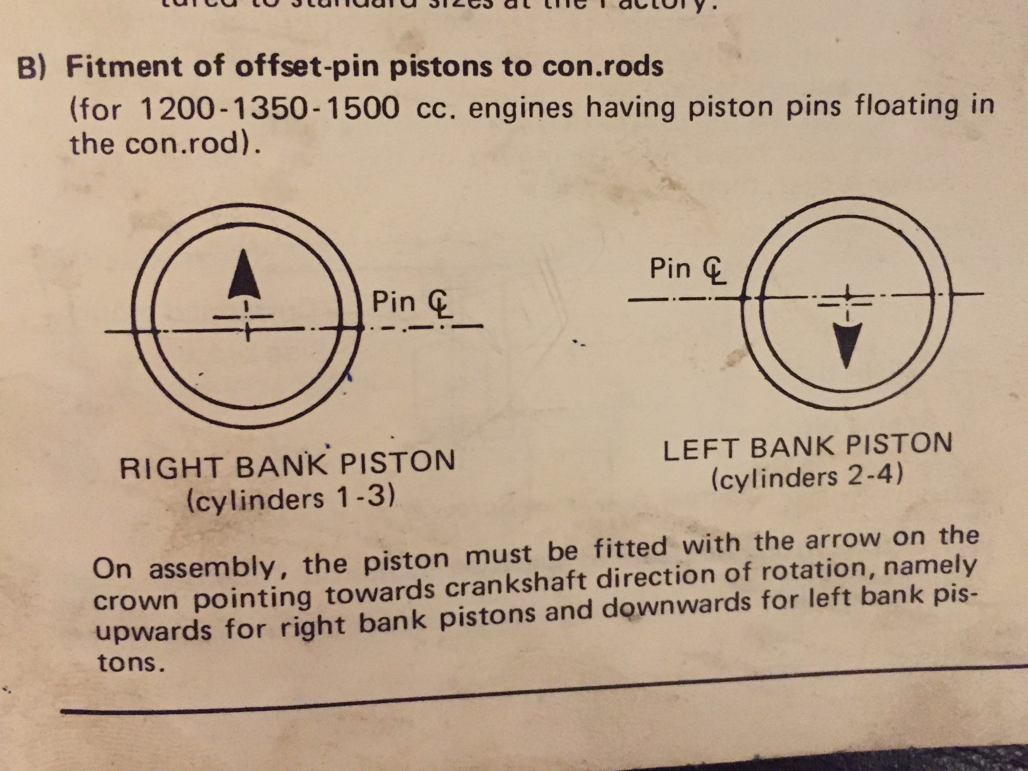 The pistons have arrows stamped in to the crown . Make sure that they are facing UP on 1 & 3. (R/H)