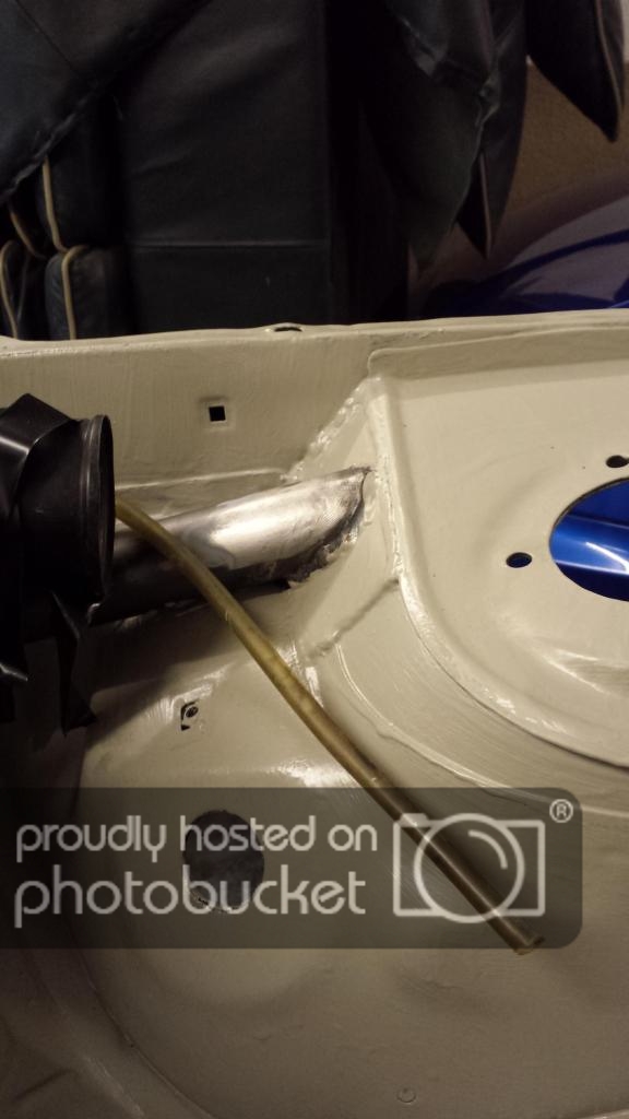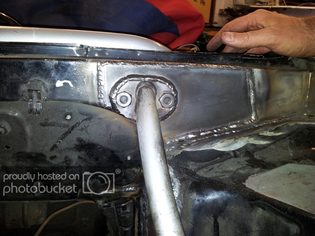 Ran roll cage tube through the fresh air vents to connect the roll cage to plates welded to the strut tops.