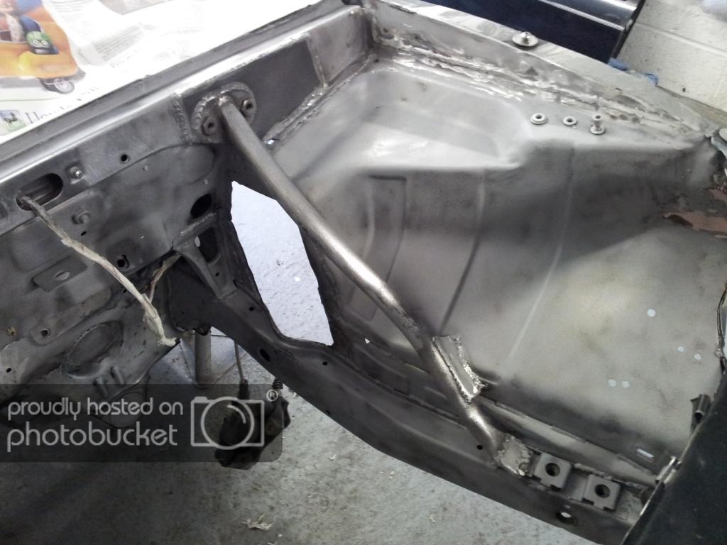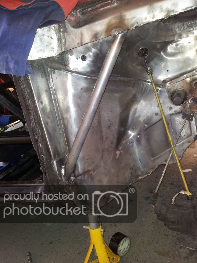 i see the racers often have a brace from teh a post to the bottom of the strut which seems sensible. It isnt getting raced, but ive nearly finished welding and theres still some flex in the shell