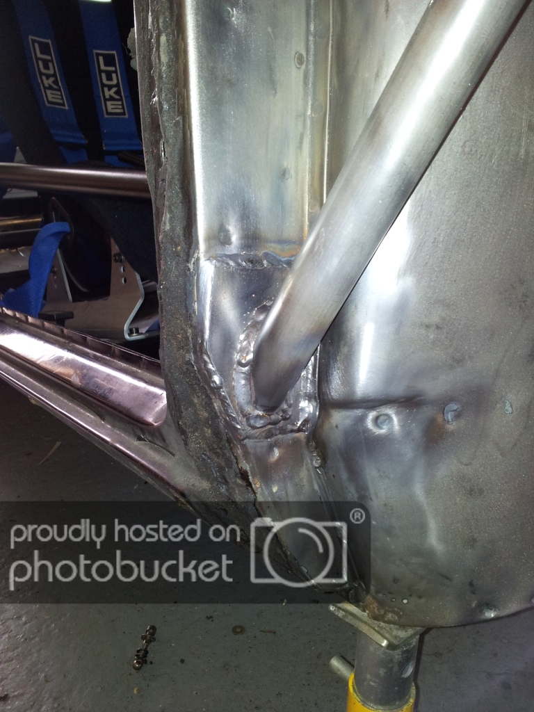 Welded in roll cage tube from the lower A pillar to the underside of the inner wing rails
