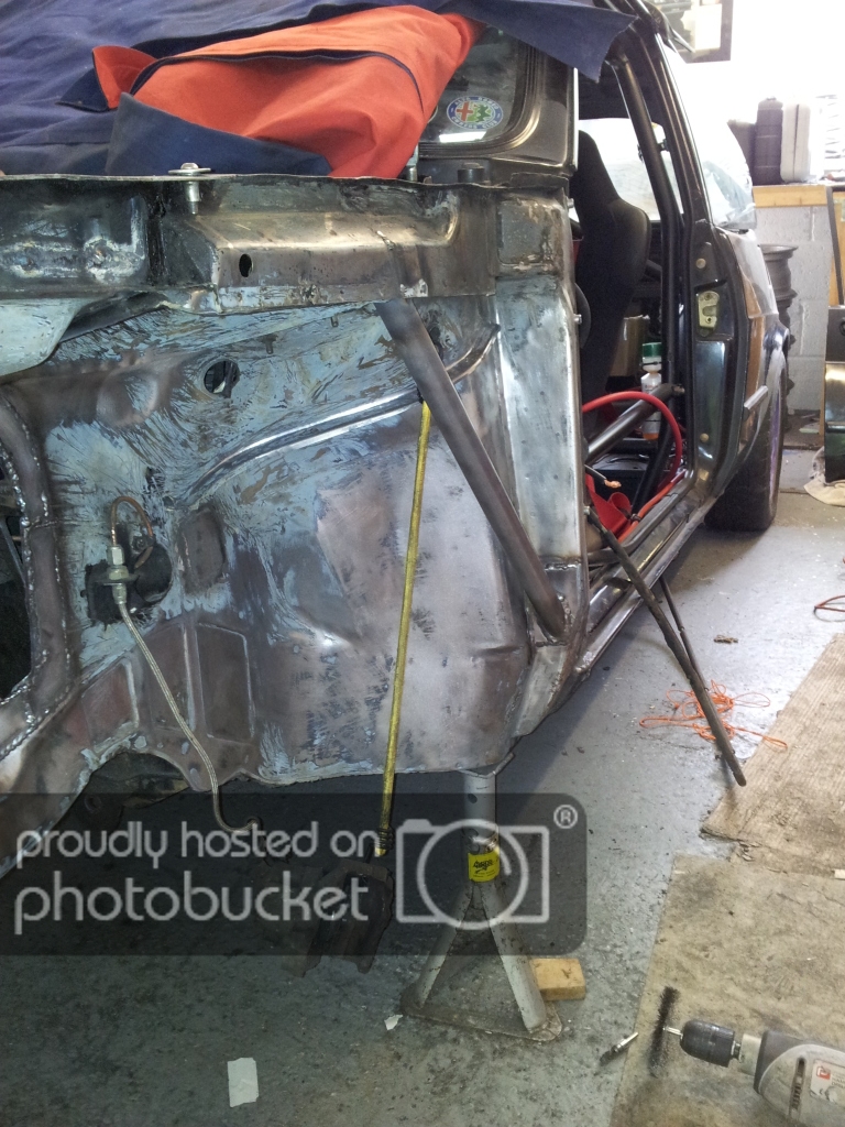 Welded in Alfa 33 braces which run from the intermediate bulkhead to the chassis rail.