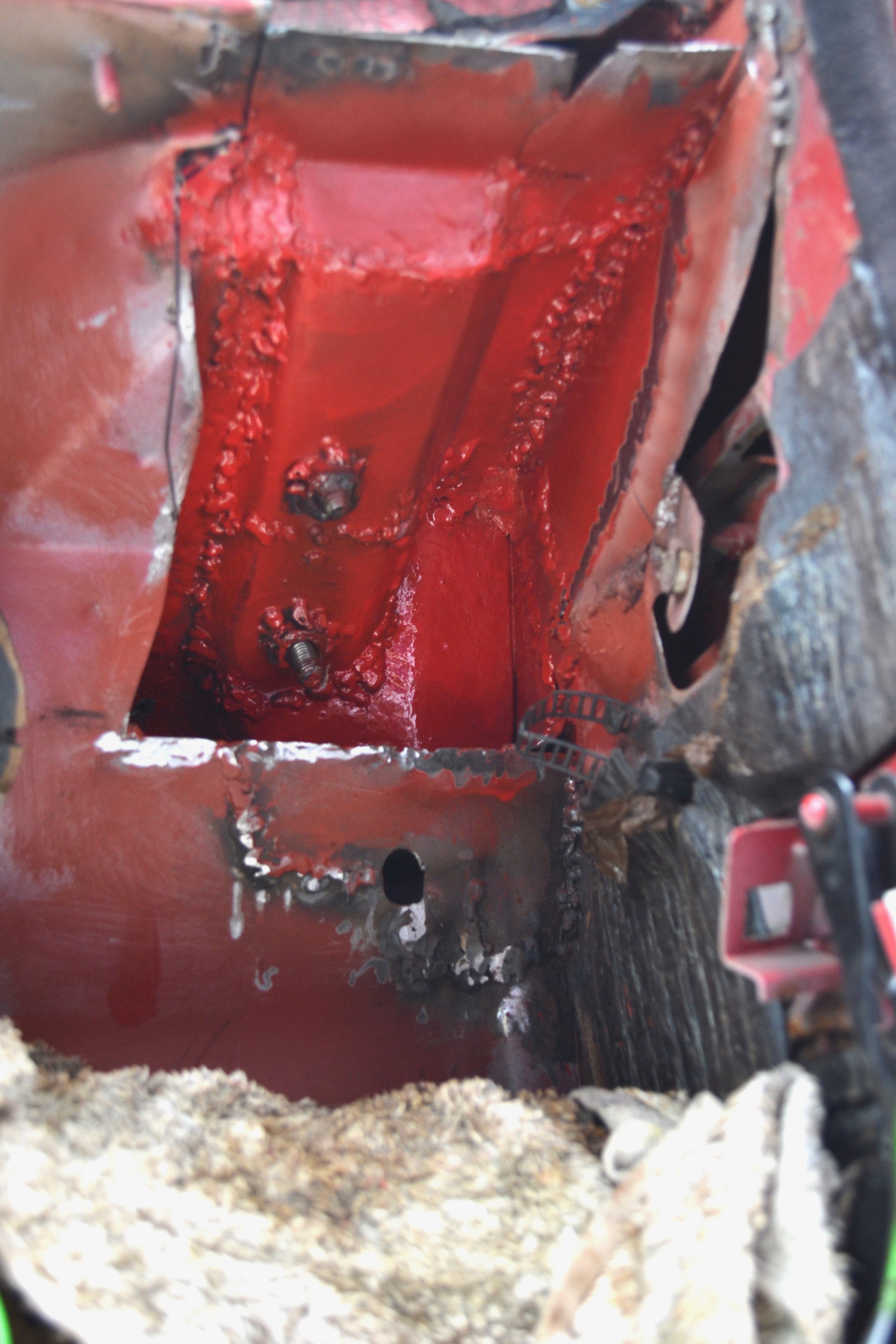 If you find your feet are getting a bit wet in your 75 you will probably find the bulkhead looks something like this when you finally remove the dashboard.
