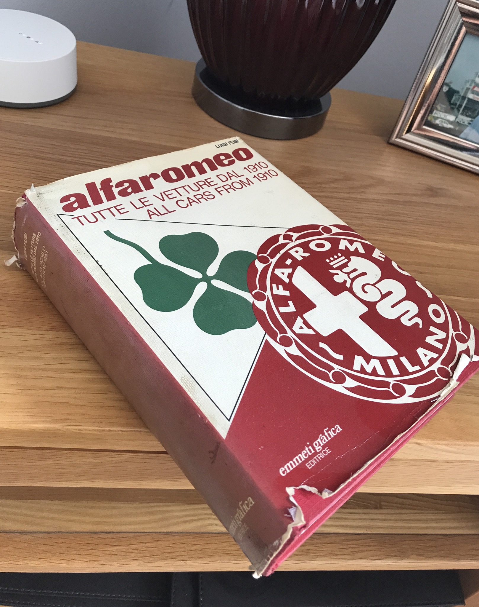 In 1978 I was with Dad in Milan funnily enough family holidays alway seemed to include a trip to Alfa in Milan ! Anyway on this one occasion Dad had a meeting with Alfa top brass including Mr Luigi Fusi. As he was in his meeting I was given a guided tour of the museum. After the meeting Dad was handed a copy of his excellent book “Alfa Romeo all the cars from 1910”. By Luigi himself which he personally signed dads (they all have a copy of his signature). In later years I had my own copy. Anyway since I inherited Dads personalised copy I now have 2 so I’m considering selling mine.