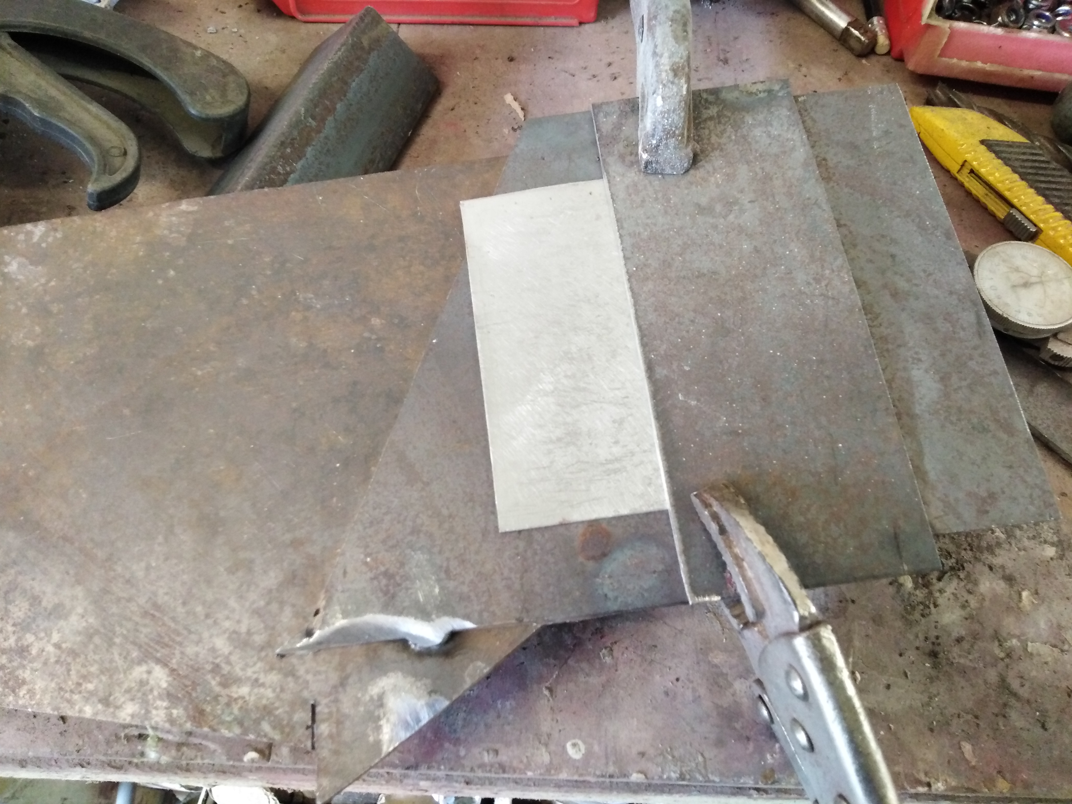 You'll notice in the next picture the folded section which is sat on the base of the jig I made, just some 2mm steel welded together.