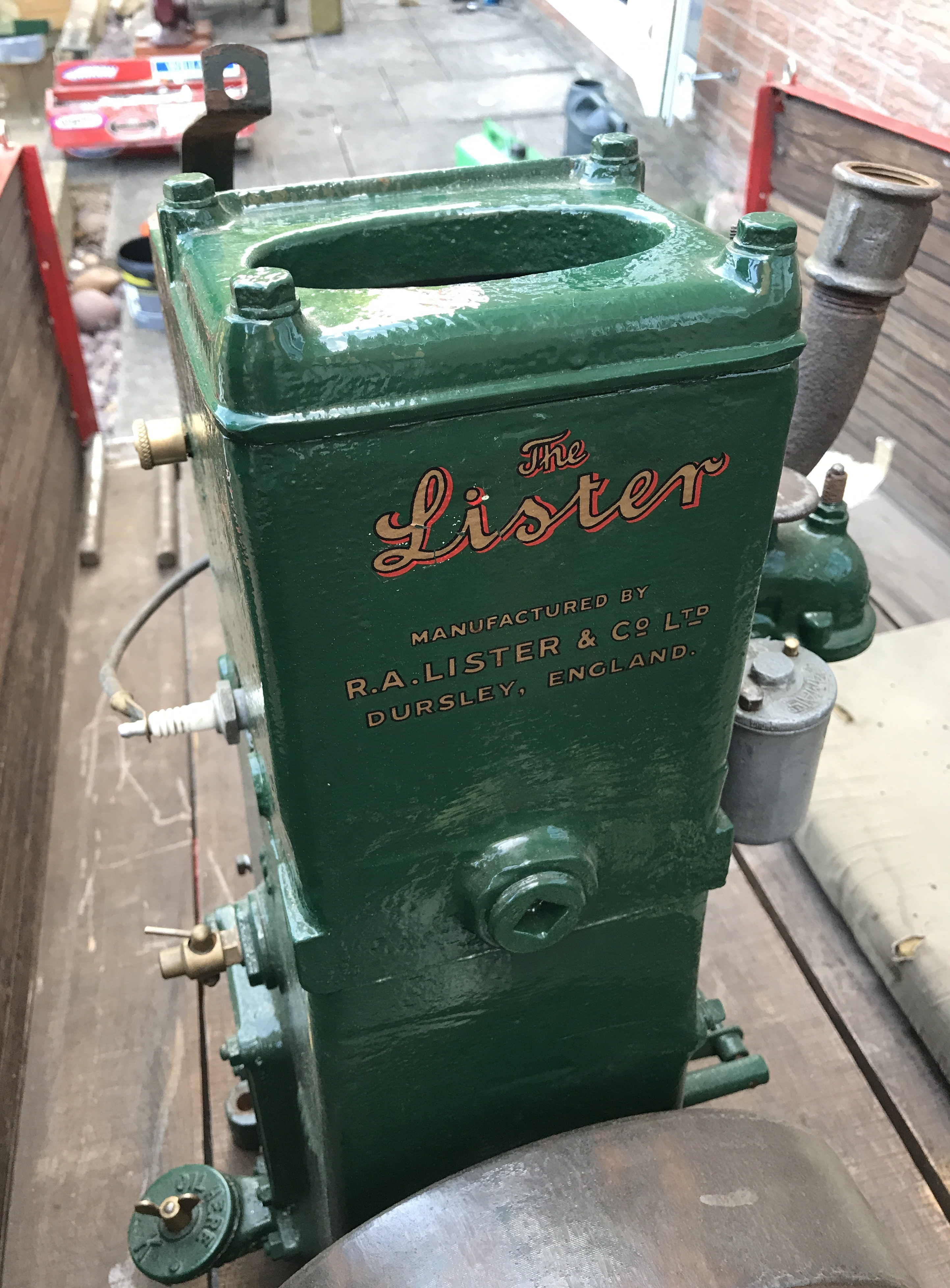 They are Lister D stationary engines commonly used in agriculture from the 1920s. Hand crank to start simple as you can get 4 stroke single cyl OHV 2hp.