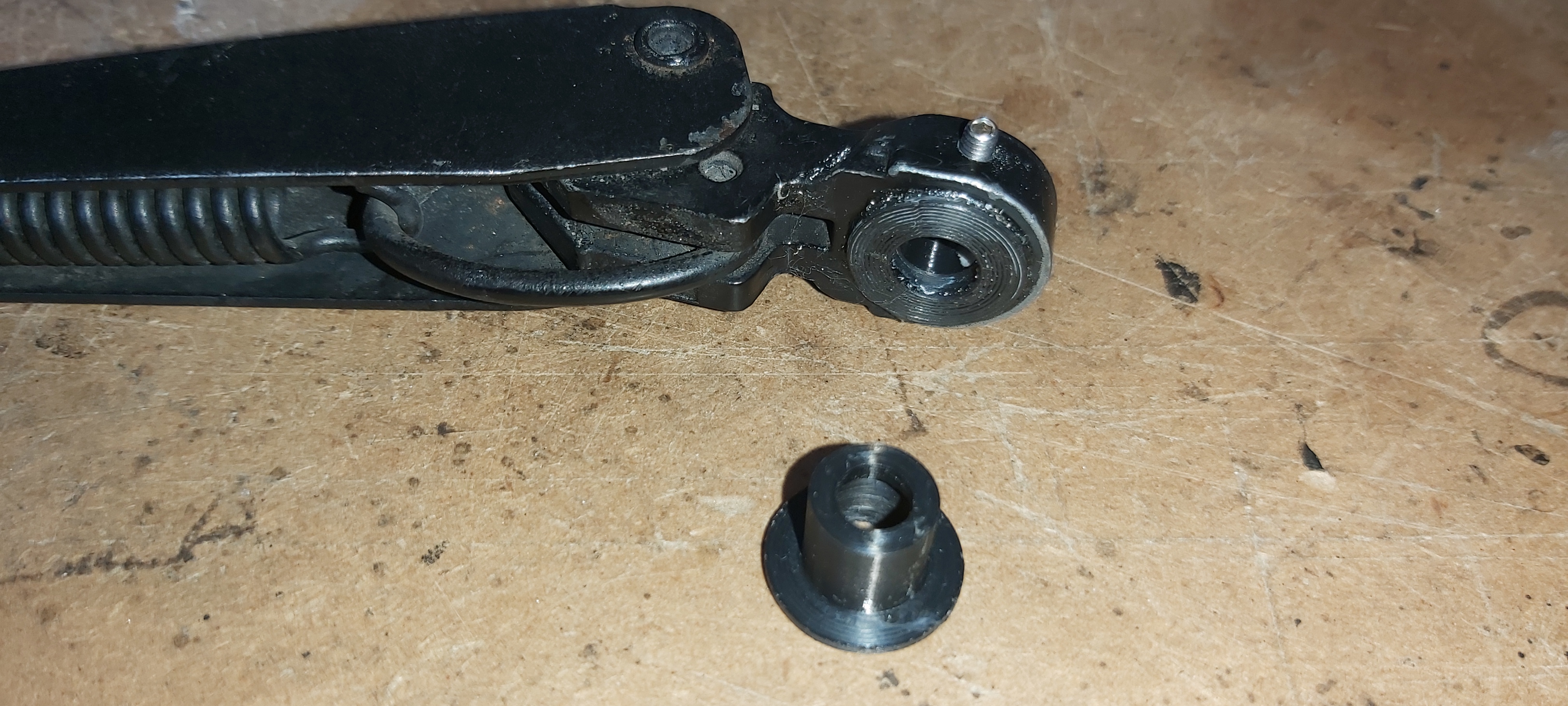 Later wiper spindles, with the arm held on with a nut, apparently well known for wearing and the spindle spinning in the arm. Worked out a solution which for me at least works a charm.