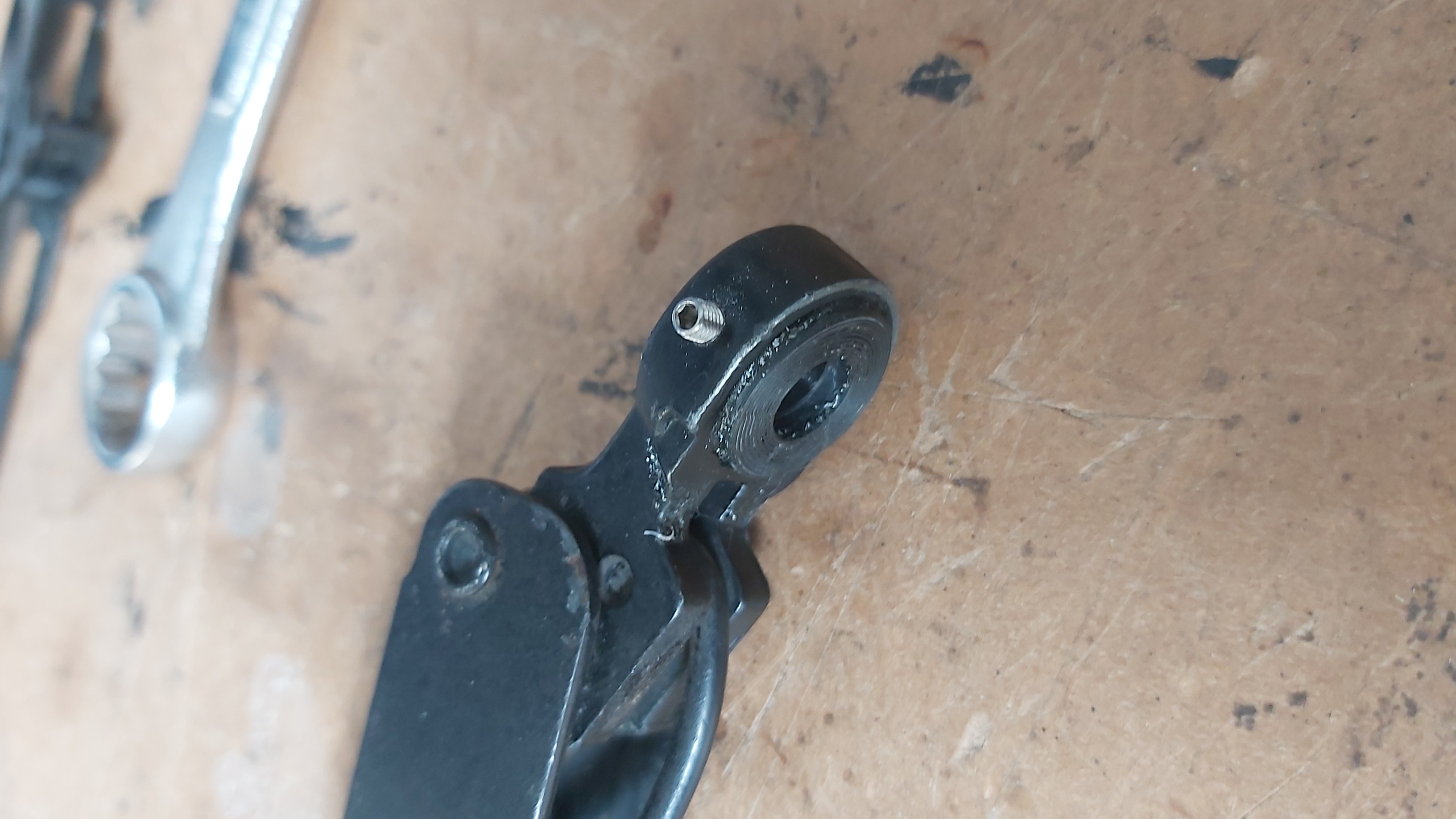 Drill out the spindle hole on the arm to 10mm then bond in the insert.
