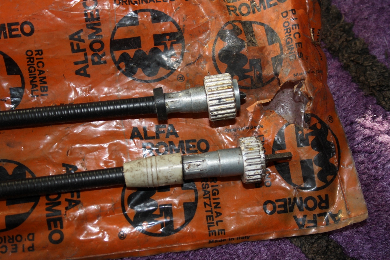 I've got a couple of new speedo cables and I know one is for an S3 Sud but I'm not sure what the other one is for. They're both the same length with the same connectors at each end but the grommets on them are different. The top one in the photo is the S3 one but does anyone know what the bottom one is ? I'm wondering if it's for an S1 or S2 or is it for something completely different ? It's definitely Alfa as it's in the original bag.