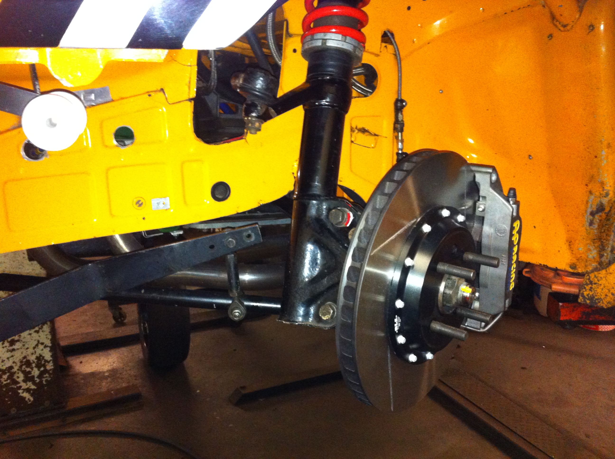 When I did posted the 2014 season summary I mentioned that at some circuits (mainly at the end of some straights!) the front brakes on our 33 were a bit marginal. The previous set up used 164 Twin-Spark discs with Alcon 4-pot racing calipers - this served has served us well but with a lot more power from the 16v engine it was time for an upgrade. We run 15" wheels so the new brakes had to fit within but we have managed to maximize the space available to us!